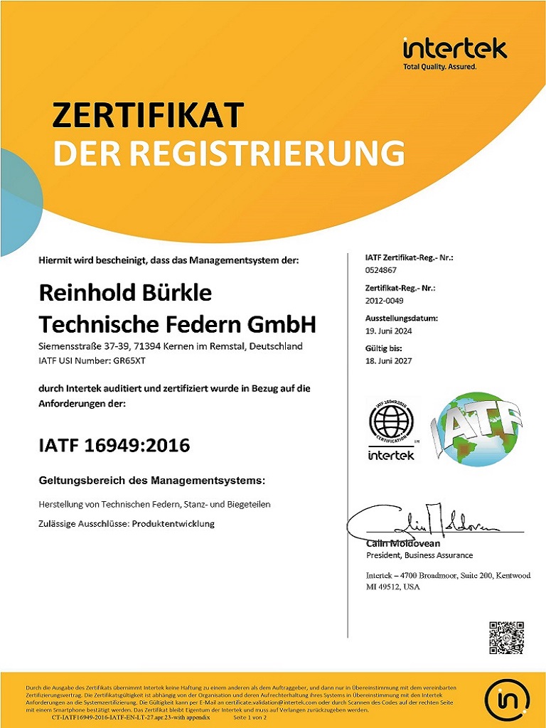 Wir leben ein zertifiziertes Qualitätsmanagementsystem nach IATF 16949 und DIN EN ISO 9001:2015. Mit der Zertifizierung erfüllen wir zusätzlich den höchsten Qualitäts-Standard der Automobilindustrie und vieler anderer Branchen. Dies garantiert unseren Kunden die konstante Qualität unserer Produkte. Dabei sind zusätzlich hohe Flexibilität und Zuverlässigkeit unsere Stärken.