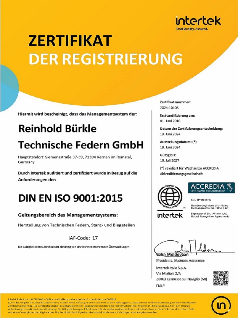 Hohe Kundenzufriedenheit im Bereich Qualität zeigen uns die Qualitätsbeurteilungen unserer Kunden als A-Lieferant auf Basis von Audits. Dies erreichen wir durch kontinuierliche Verbesserung und gezielte Ausrichtung der internen Abläufe(TQM)und unseres Qualitätsmanagements auf die Anforderungen und Bedürfnisse unserer Kunden. Mit dem jährlichen Überwachungsaudit durch die unabhängige Zertifizierungsgesellschaft Intertek wird uns die Qualität unserer Organisation und der Prozesse regelmäßig bestätigt.